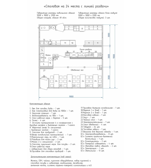модульная столовая на 24 места с линией раздачи