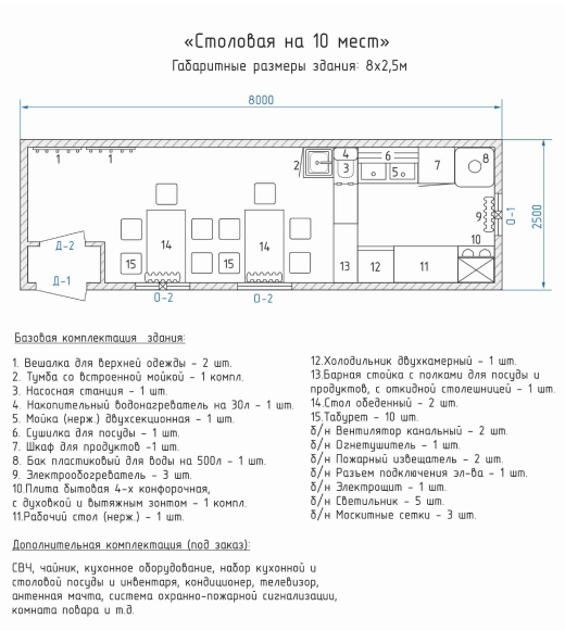 модульная столовая на 20 человек с окном раздачи